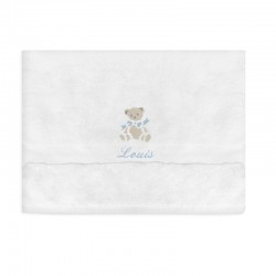 Un drap de bain tout doux et très pratique à personnaliser dont vous pouvez choisir le motif ainsi que l'inscription. - Coloris de la broderie au choix : rose, bleu ou gris - Bavoir à personnaliser avec le prénom de votre choix (voir en bas de page pour noter et enregistrer l'inscription) - Motif au choix: étoile, coeur, ours ou train (voir en bas de page...