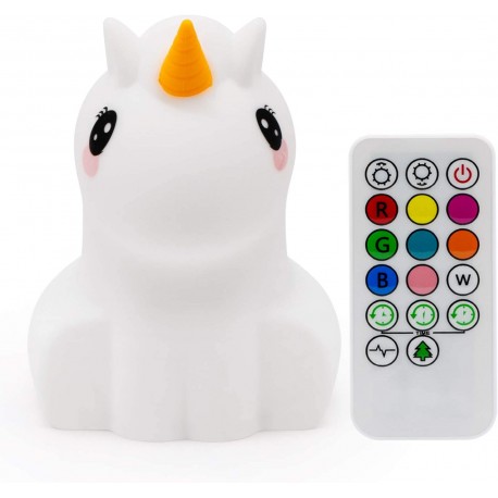 Un jolie veilleuse licorne en silicone doux et lavable. Livrée avec sa télécommande. Alternance de huit couleurs.